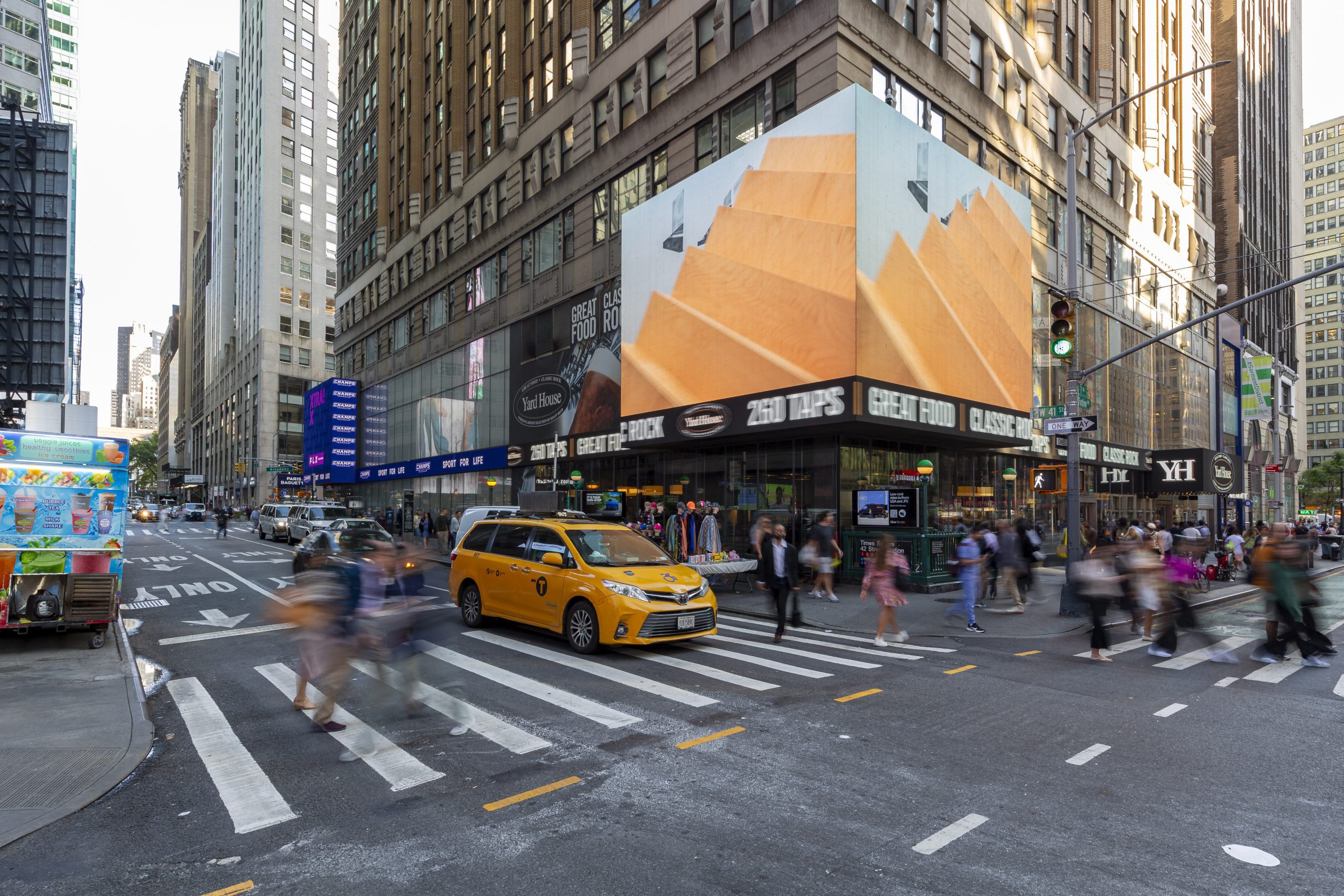 Monad documents a motorized sculpture built from plywood, steel, gears, and hardware, moving in a continuous circuit trajectory and revealing its form from shifting perspectives. Displayed for 15 seconds at a time on a large LED screen, the video artwork appears briefly amid the constant movement of Times Square, giving passersby a short but striking glimpse into Keinan’s exploration of movement, form, and perception. Original Video LINK